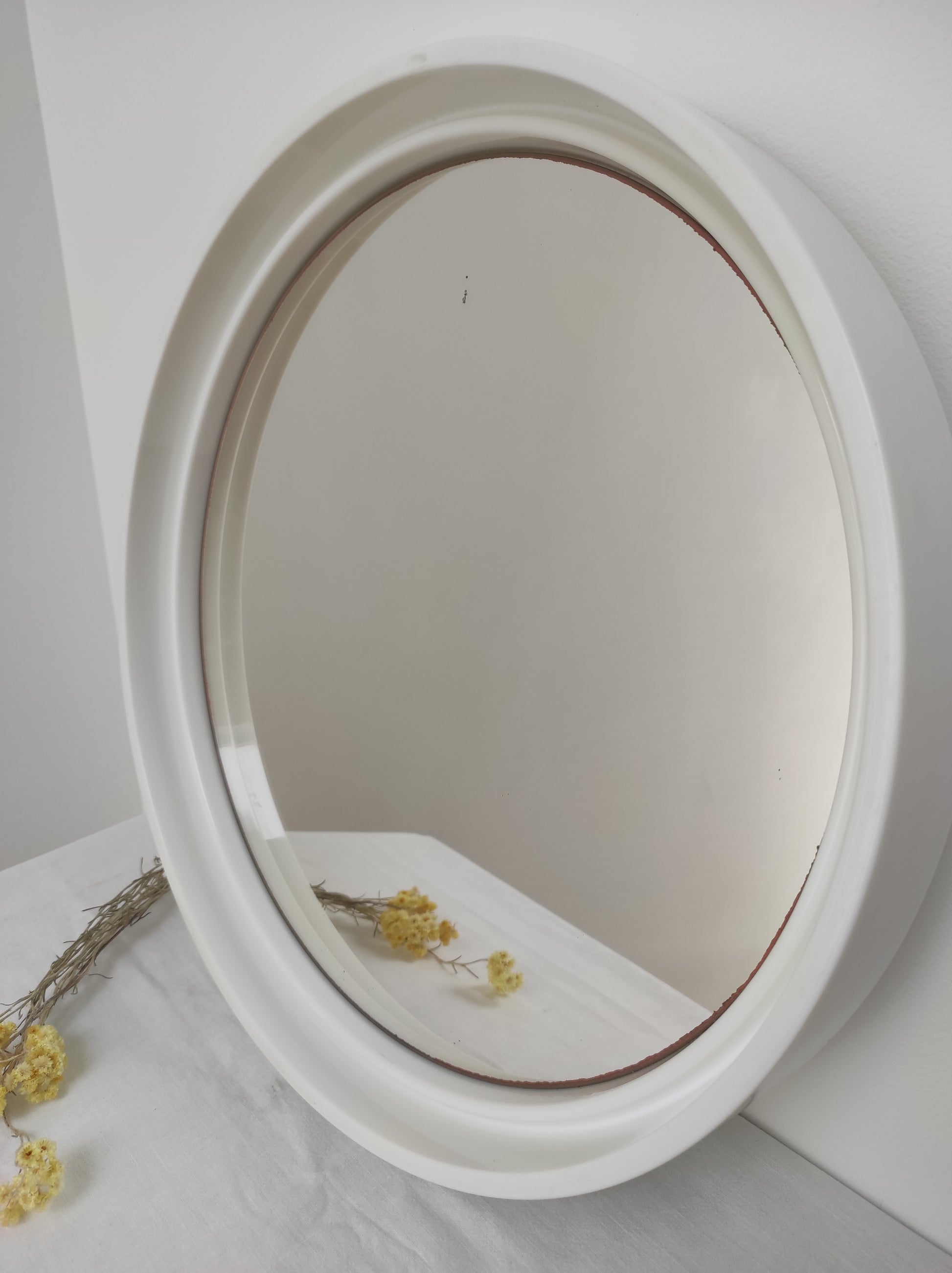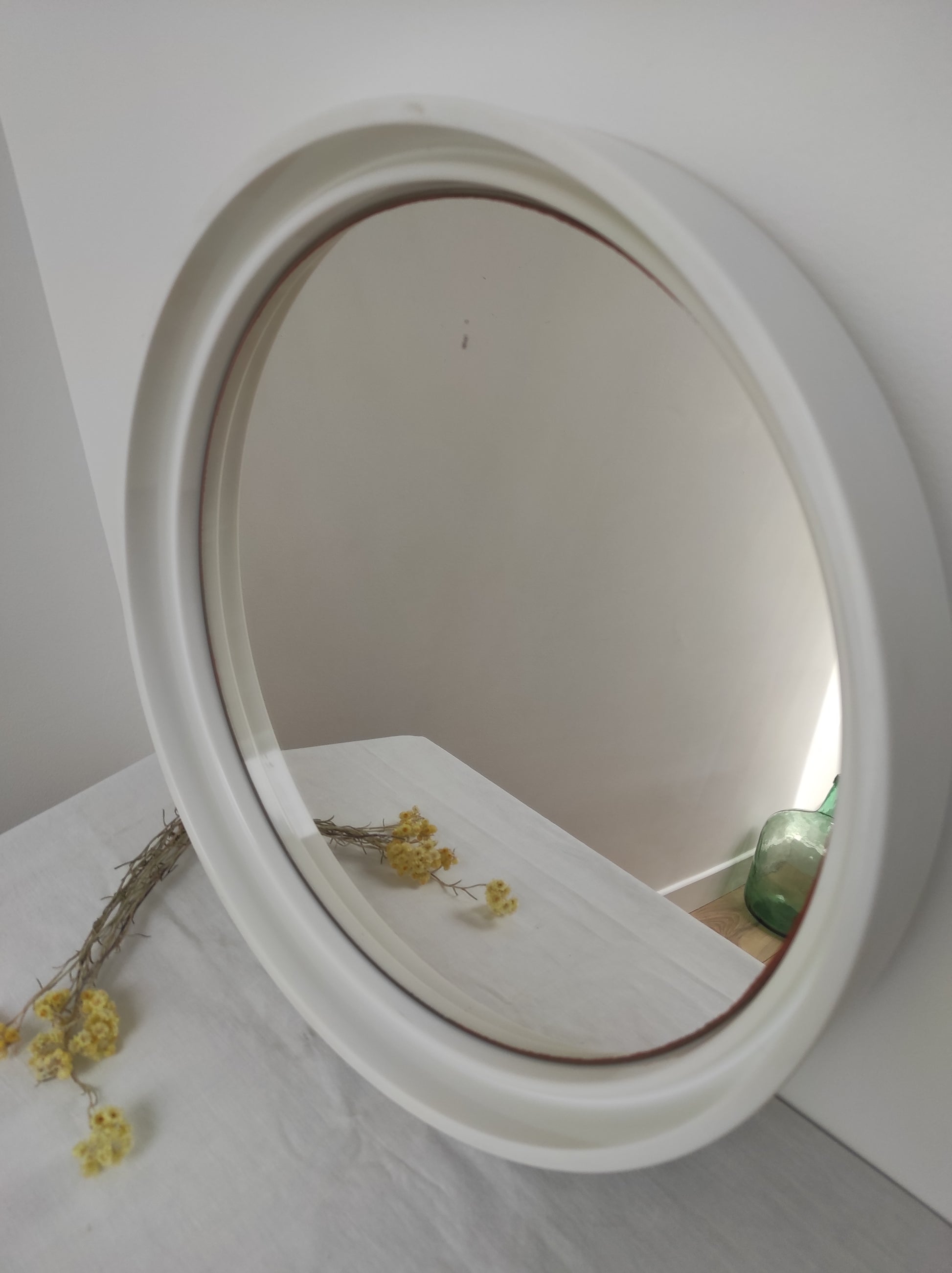 Miroir rond vintage style Gilac 1813 en plastique blanc