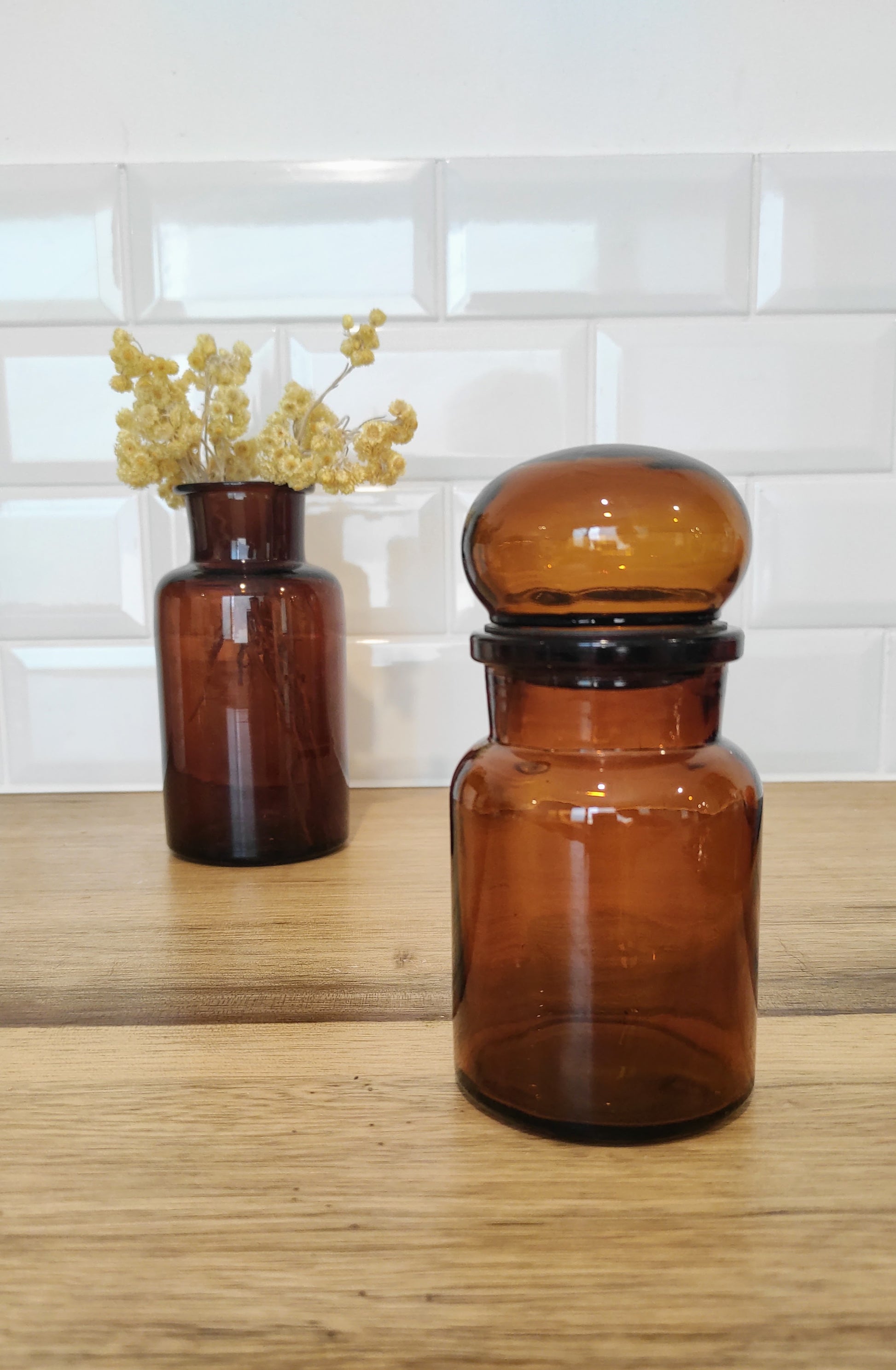 Ce bocal en verre ambré de style apothicaire sera parfait pour vos aliments grâce à son bouchon hermétique.